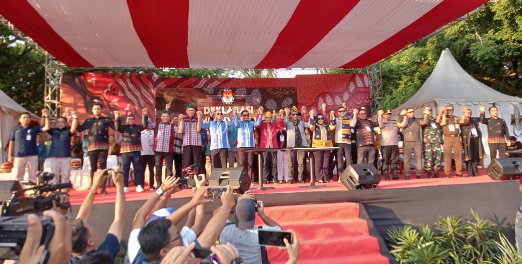 Deklarasi damai dipandu oleh Ketua KPU Sultra, Asril yang diikuti oleh empat pasangan calon Pilgub Sultra dan partai pengusung.