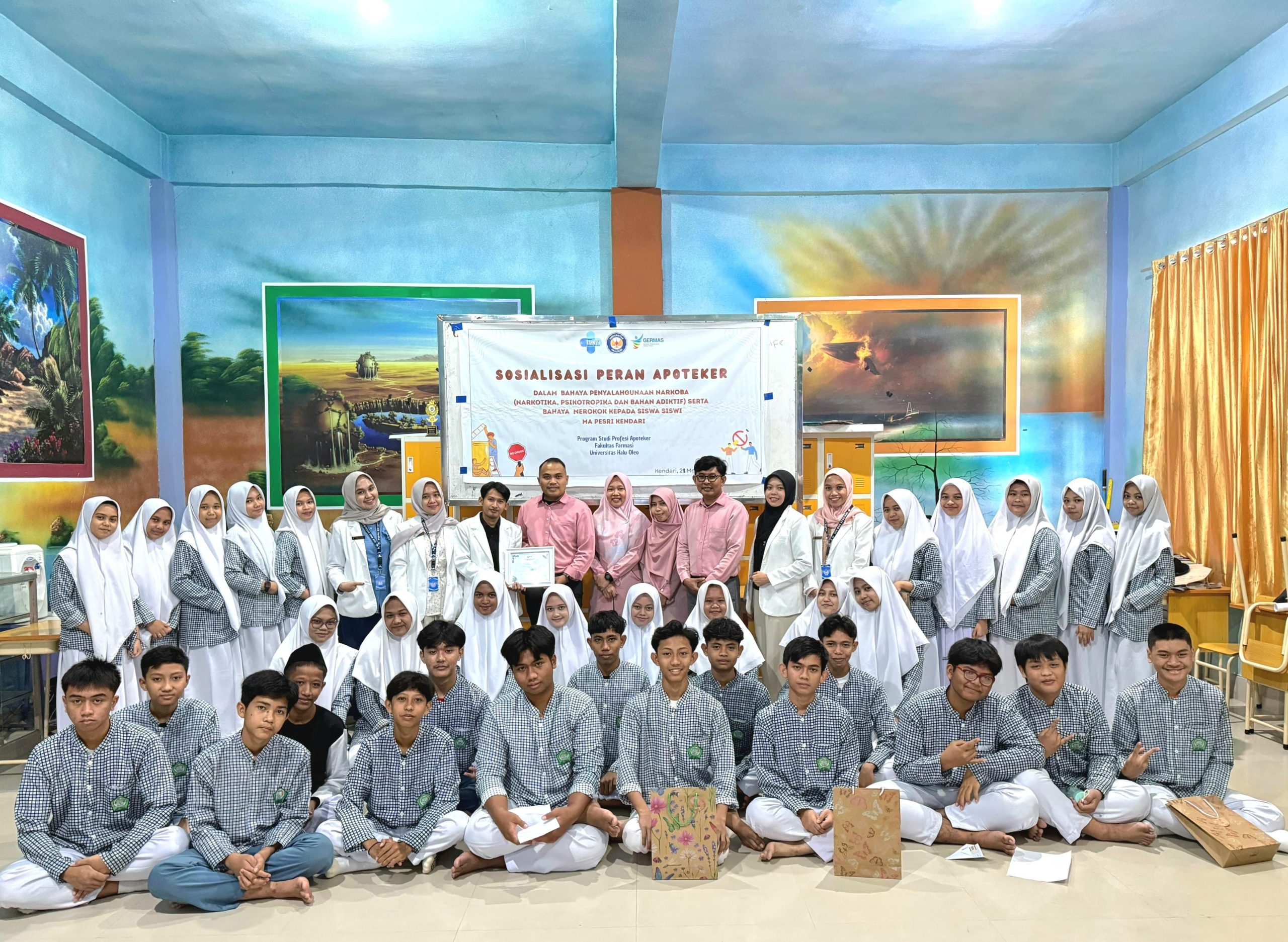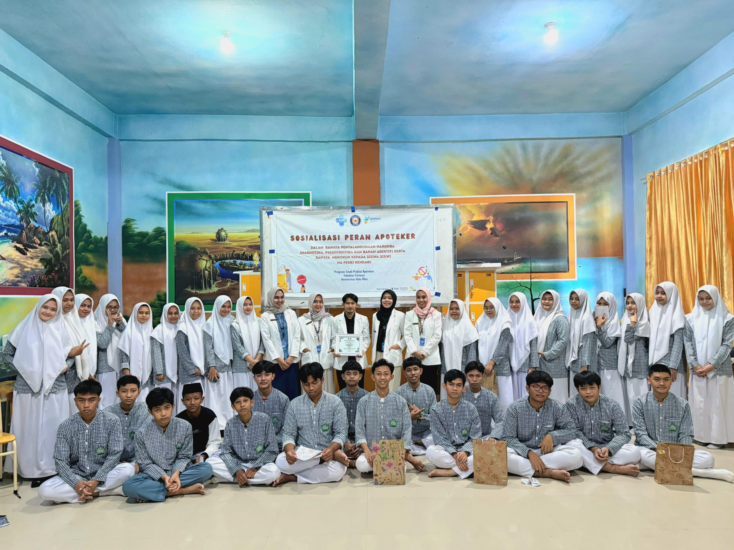 Dalam rangka mewujudkan generasi remaja tanpa narkoba, para mahasiswa profesi apoteker dari Universitas Halu Oleo mengenalkan tentang bahaya penyalahgunaan narkoba (Narkotika, psikotropika dan zat adiktif) kepada para siswa MA Pesri Kendari pada hari Rabu (28/5/2025), pukul 08.00. Kegiatan ini diikuti antusias oleh puluhan siswa siswi MA Pesri Kendari.
