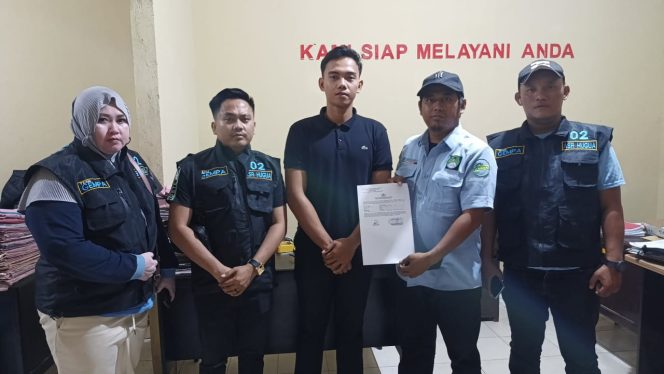 Ketgam: Tim Relawan Gerakan Elemen Muda Pendukung Andi Sumangerukka melaporkan dugaan perusakan alat kampanye ke Polres Konawe. Foto: Tim ASR
