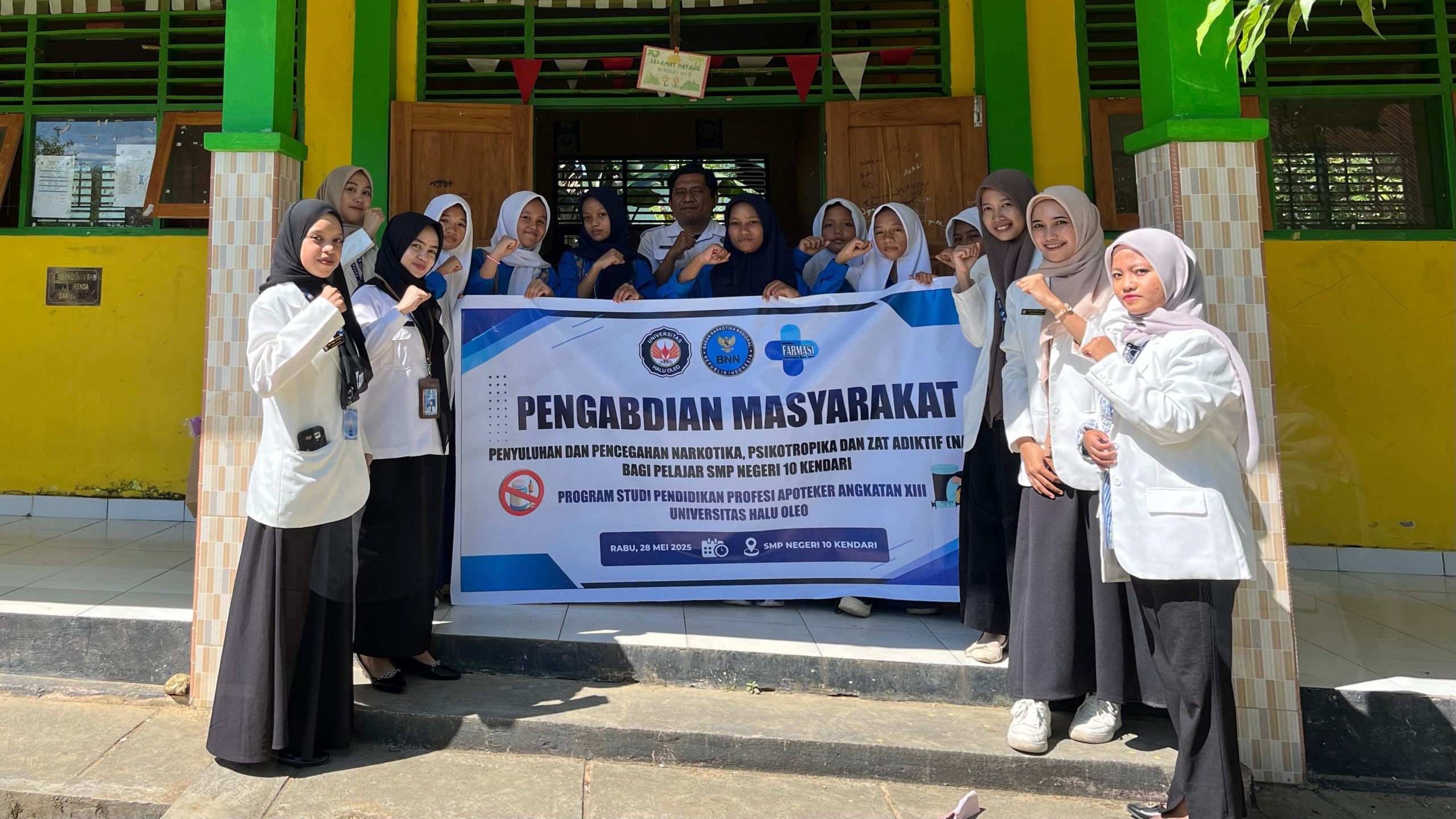 Dalam rangka mewujudkan pergaulan remaja tanpa narkoba, para mahasiswa profesi apoteker Universitas Halu Oleo mengenalkan para siswa tentang pencegahan narkotika, psikotropika dan zat adiktif (Napza) melalui kegiatan sosialisasi di SMP Negeri 10 Kendari. Kegiatan ini diikuti antusias oleh puluhan siswa siswi kelas VII.5 SMP Negeri 10 Kendari.