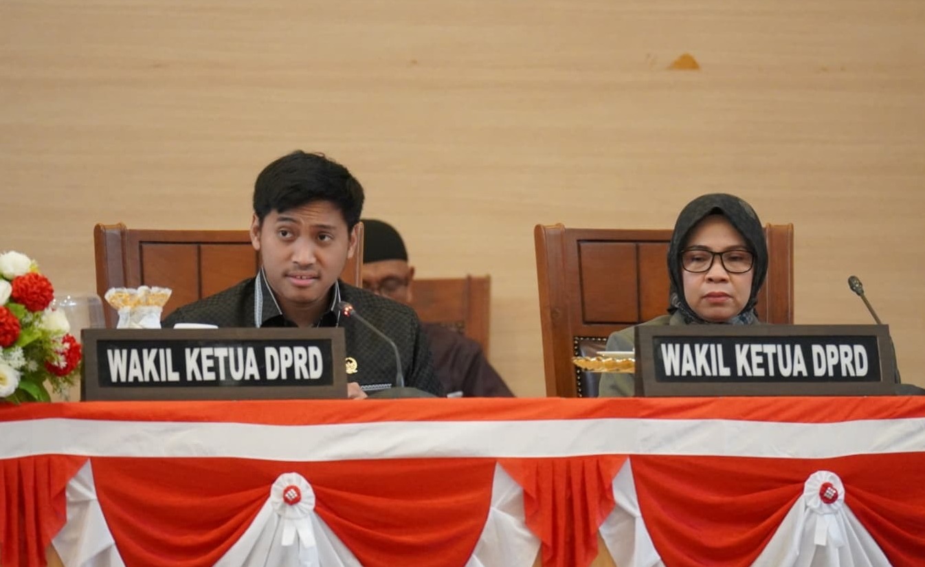 Ketgam: Wakil Ketua DPRD Kendari, Rizky Brilian Pagala didampingi Irmawati saat memimpin rapat dengan agenda jawaban Walikota terhadap pandangan umum fraksi atas Raperda RPJMD