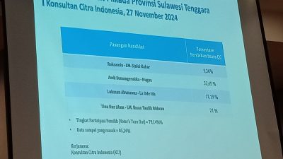 KENDARI, TAJUKSULTRA.ID – Hasil quick count atau hitung cepat sementara Pilkada Sulawesi Tenggara (Sultra) 2024…
