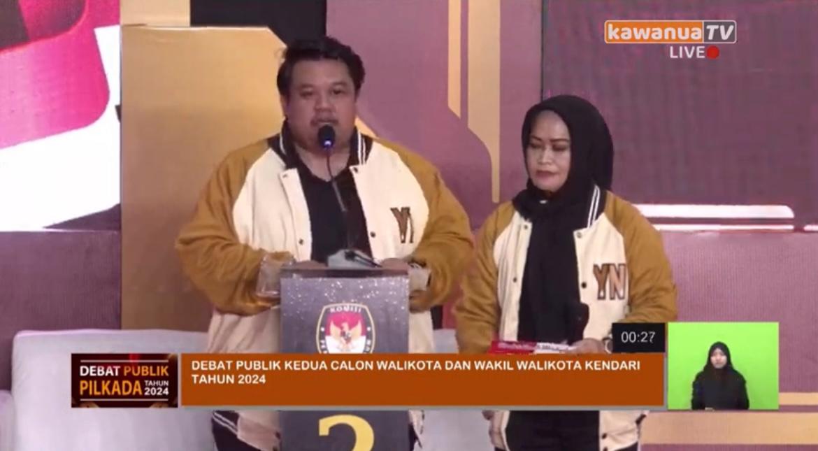 Dalam sesi kedua debat kali ini, pasangan calon (Paslon) nomor urut 2 Yudhianto Mahardika Anton Timbang-Nina Lachmuddin berkesempatan menjawab pertanyaan dari panelis.